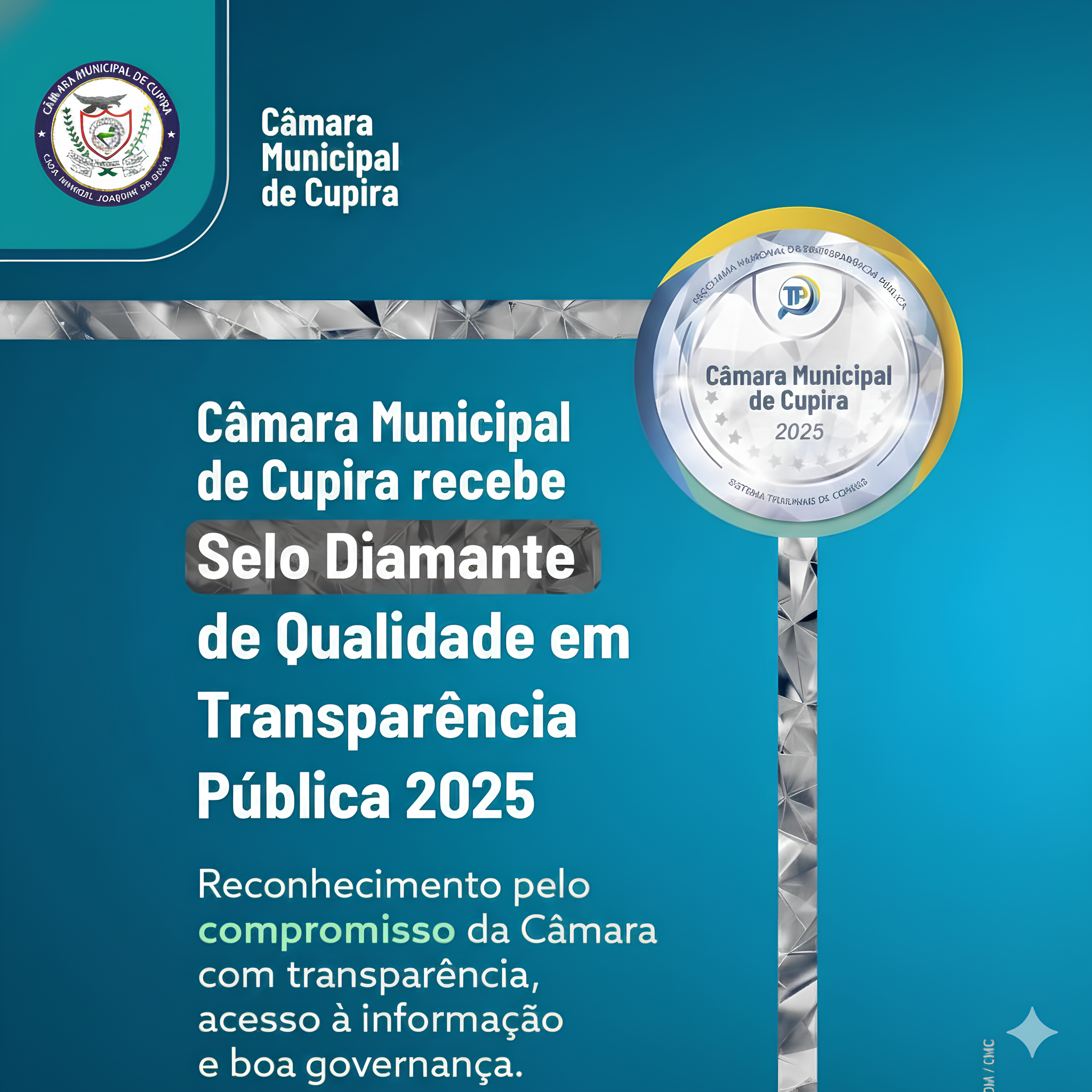 A Câmara Municipal de Cupira foi oficialmente reconhecida pela ATRICON – Associação dos Membros dos Tribunais de Contas do Brasil – com o Selo Diamante de Transparência Pública, obtendo a expressiva pontuação de 99,5%.